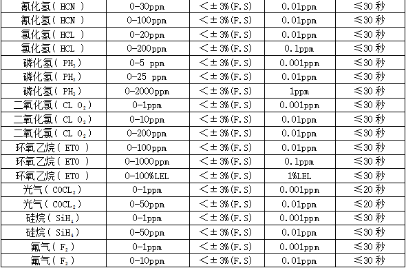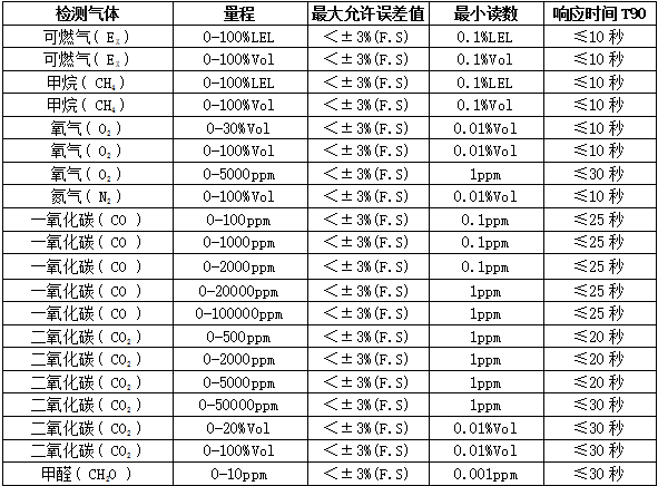 檢測范圍:0~1、10、100、1000、5000、50000、100000ppm、100%LEL、20%、50%、100%Vol可選,其他量程可訂制。