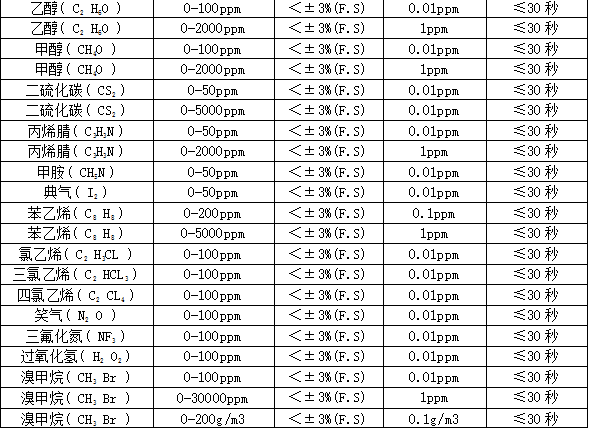 響應(yīng)時間:T90≤30秒恢復(fù)時間:≤30秒